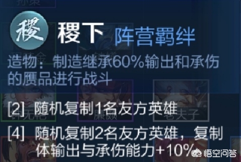 两个稷下英雄的作用是激活阵营羁绊,随机复制场上一个队友。